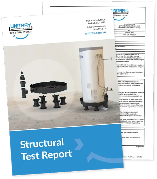 The UNITRAY concept was born out of the desire to improve the speed and ease of installation of safe trays for hot water units and to ensure that installations are compliant with the AS3500 plumbing first time, every time. The UNITRAY reduces time, costs and hassles when installing a hot water unit.